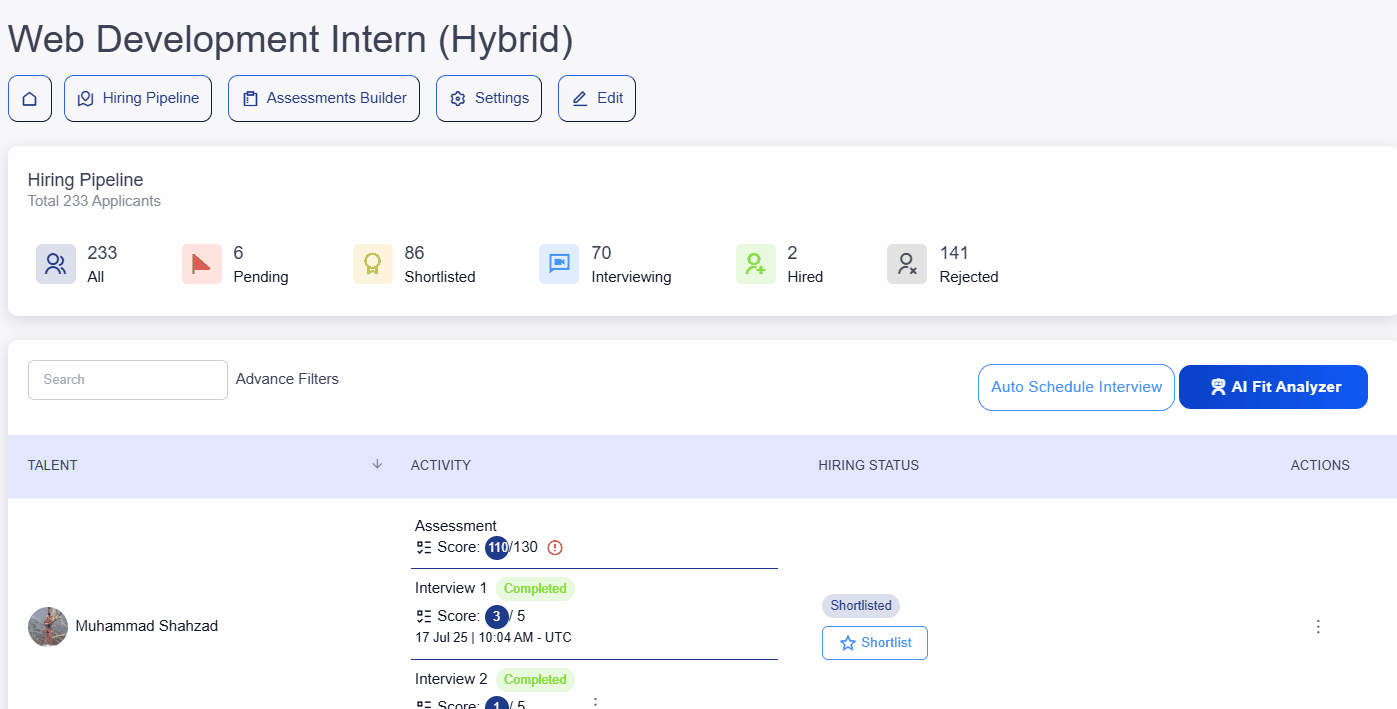 Design interview flows once and reuse them across roles or tweak them as needed. Perfect for startups and enterprises alike, whether you're hiring one person or scaling a team.