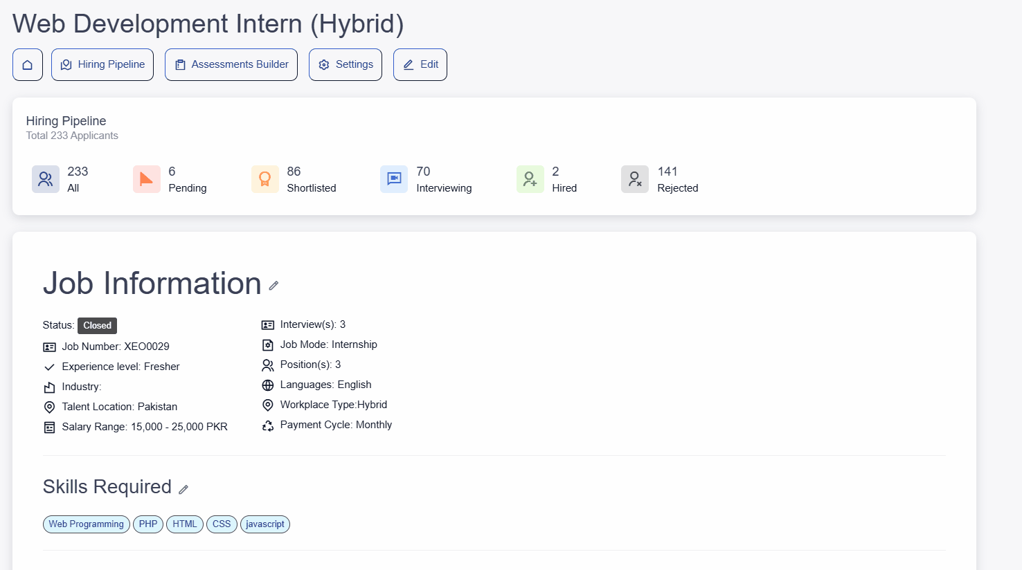 Each applicant's profile includes a detailed activity timeline showing every action taken—from invitation to final result—keeping your team aligned and audit-ready.
